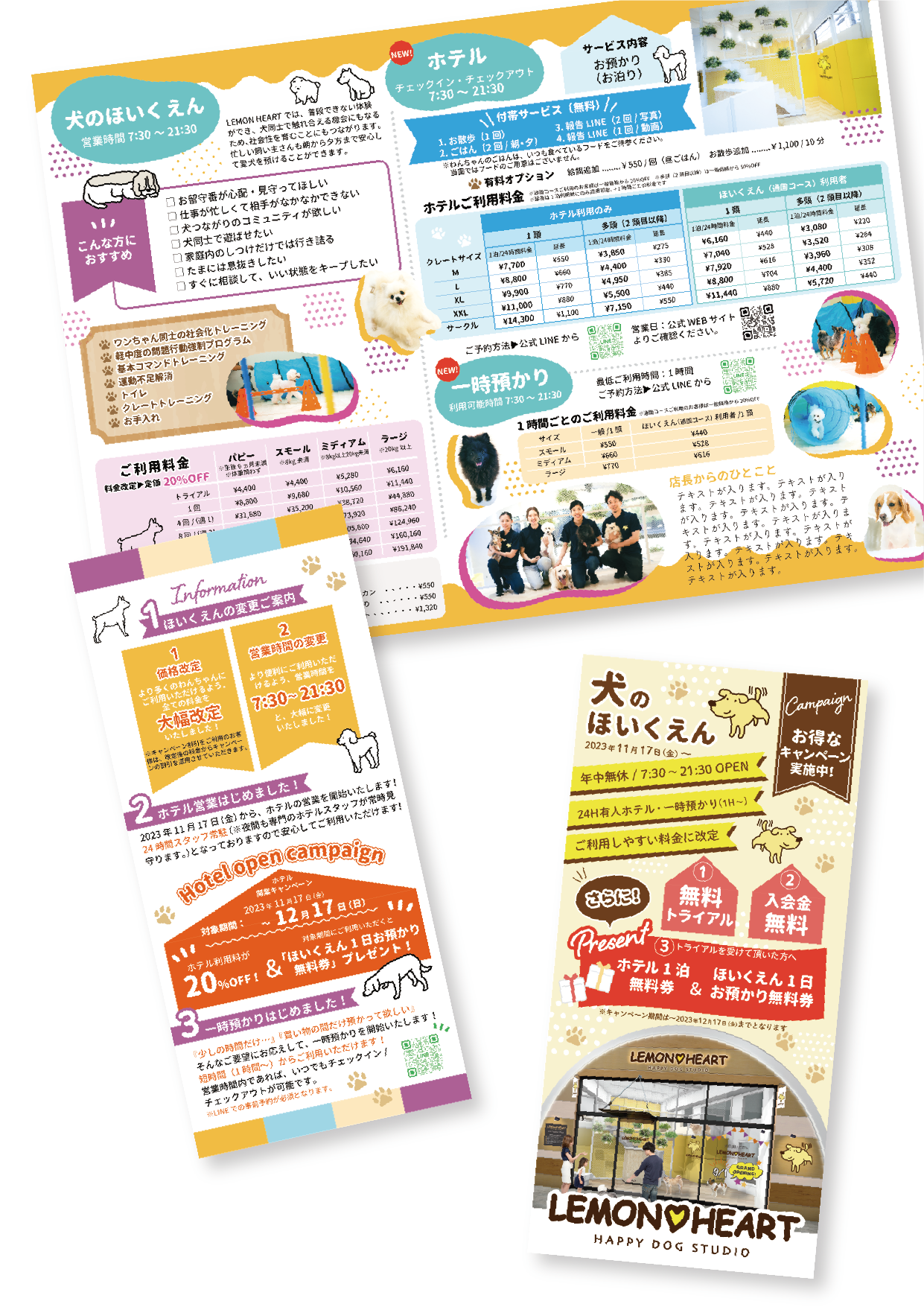 ご依頼分、犬のほいくえんのパンフレット第3弾です。