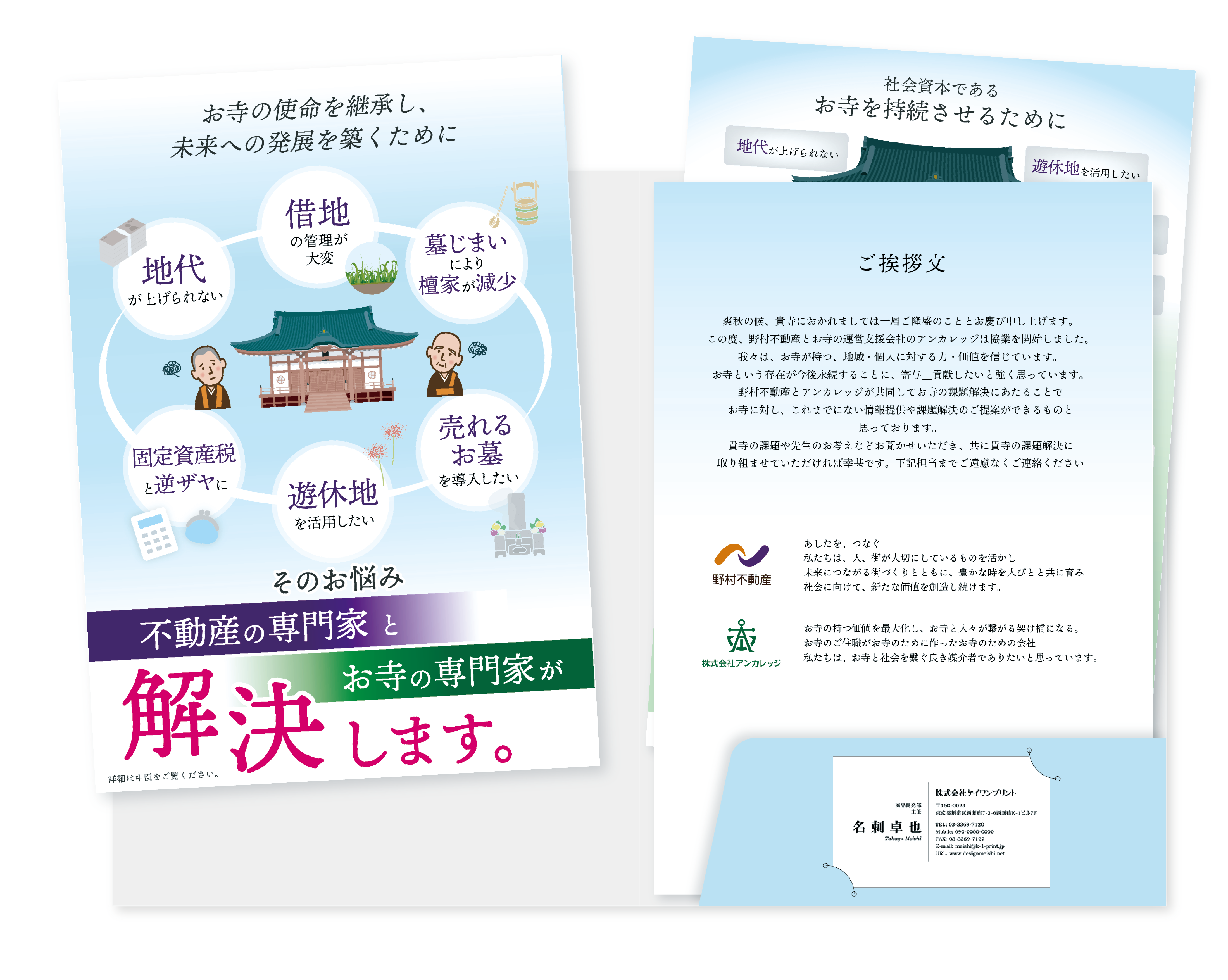 採用作品、お寺のサービスのパンフレットです。